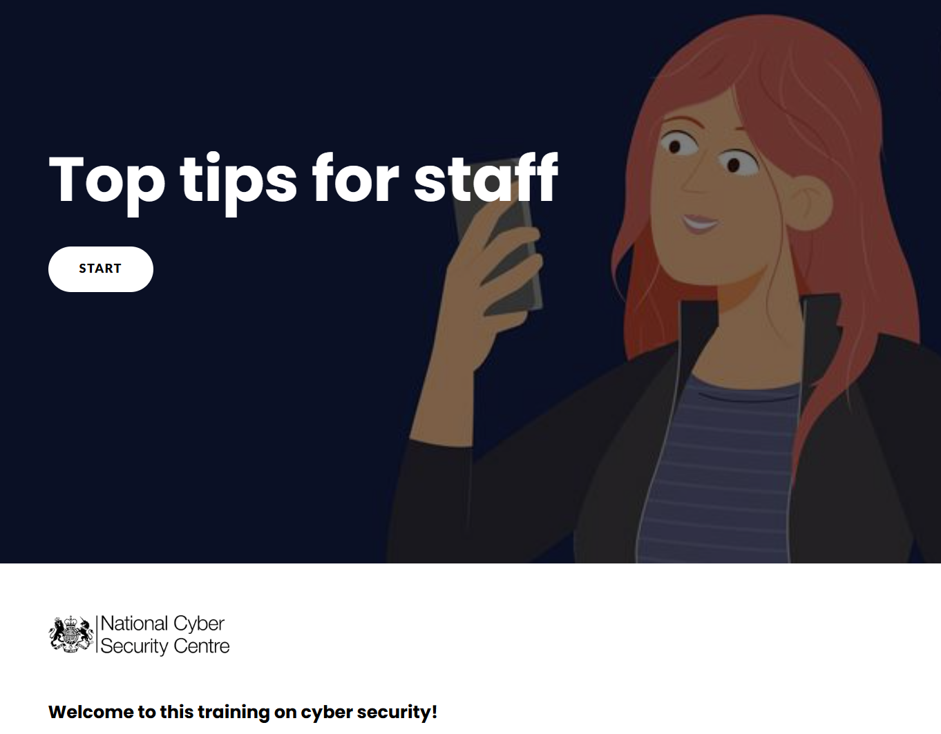 • Follow this link to the National Cyber Security Centers FREE end user training.  Top tips for staff